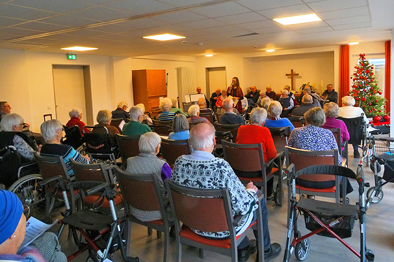 Große Freude verbreitete der Chor Liederkranz Hohenwepel den Bewohnerinnen und Bewohnern im Dezember. Haus Phöbe hatte den gemischten vierstimmigen Chor mit den Stimmen Sopran, Alt, Tenor und Bass zu einem Konzert eingeladen.