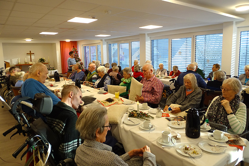 An Heiligabend ist die Sehnsucht nach einem Gefühl von Zuhause und Gemeinschaft besonders groß. So feierten die Mitarbeitenden Weihnachten mit den Bewohnerinnen und Bewohnern wieder besonders intensiv: Es wurden Weihnachtslieder gesungen, gegessen und Geschenke verteilt. Auch die Plätzchen zum Naschen waren beliebt.