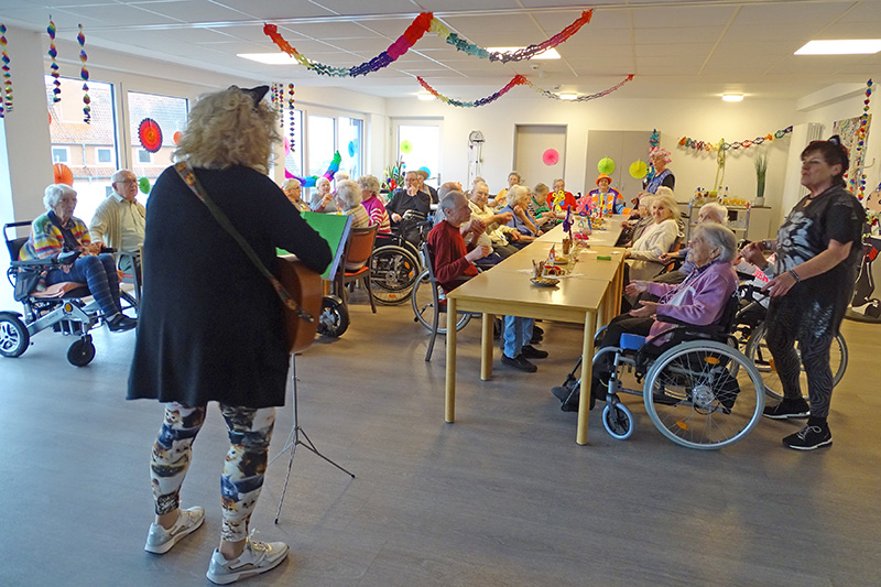 Ein besonderes Highlight des Nachmittages war der Besuch von Maria Thonemann, die mit ihrer Gitarre und einer Auswahl beliebter Karnevalslieder die Herzen im Sturm eroberte. Ihre Musik füllte den Raum mit Wärme und Leichtigkeit, und schnell sangen einige der Anwesenden mit oder wippten im Takt. Die vertrauten Melodien weckten Erinnerungen, sorgten für strahlende Gesichter und ließen die Gemeinschaft noch enger zusammenrücken.