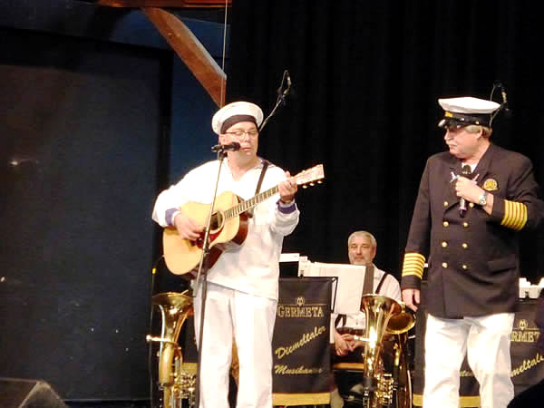 Das Hamburger Stimmungsduo „Klaus und Klaus“ versüßte den 650 Gästen den Nachmittag. Mit ihrem Evergreen „An der Nordseeküste stürmten sie die Bühne und schon nach Sekunden schunkelte das Publikum zum Walzertakt. Für viel Gelächter sorgte auch Kabarettist Wolfgang Andre, der in seiner Rolle als Hausmeister Klopotek in Warburg Station machte.