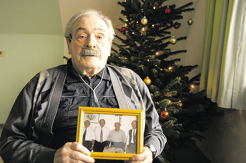 Liebevolle Erinnerungen: Ludwig Bick zeigt ein Foto, auf dem er und seine drei Brüder zu sehen sind. | © Katharina Engelhardt
