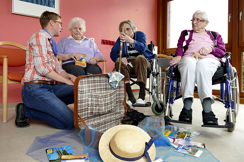 Auf dem Boden liegt ein offener Urlaubskoffer. Daneben ein Strohhut, ein Wanderstock und einige Reiseführer. Elfriede Meissner, Ursula Loewende und Maria Schulte nehmen die Gegenstände in die Hand - und lächeln. Sofort rattert es in ihren Köpfen. Wenig später berichten sie von ihren schönsten Urlaubsreisen.
