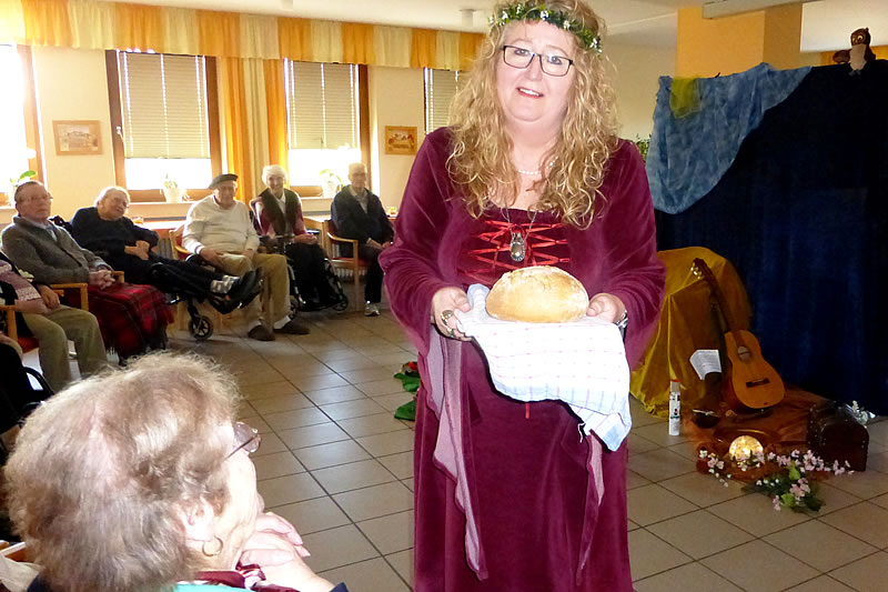 Die Reiseführung wurde unter anderem durch ein Märchen-Bingo geleistet. Märchenhafte Speisen gab es dann als Mittagessen. Der Nachmittag stand unter dem Motto: Märchen sind Seelennahrung. Bei Kaffee und Rotkäppchenkuchen verführte die Märchenerzählerin Maria Thonemann alle in die Märchenwelt.