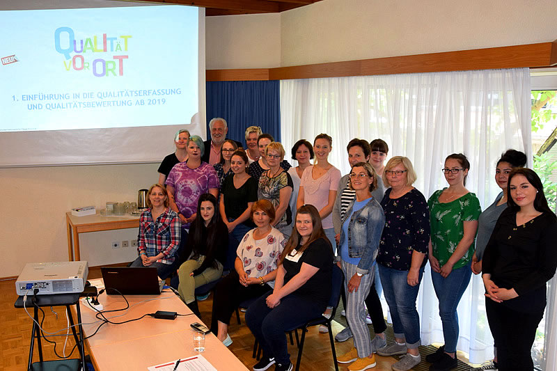 20 Mitarbeiterinnen aus den Altenheimen der Evangelischen Frauenhilfe in Westfalen nahmen Mitte Juni an einer ganztägigen Schulung teil. Einrichtungsleitungen, Pflegedienstleitungen und stellvertretende Pflegedienstleitungen, Pflegefachkräfte sowie Mitarbeiterinnen aus dem sozialen Dienst des Warburger Haus Phöbe, des Soester Hanse-Zentrums und des Soester Lina-Oberbäumer-Hauses beschäftigten sich einen ganzen Tag lang mit der Vorbereitung und Umsetzung der neuen Qualitätsprüfung durch den Medizinischen Dienst der Krankenkassen (MDK). Damit möglichst viele geschult werden können, gibt es Mitte Juli eine weitere Schulung für weiteres Fachpersonal.