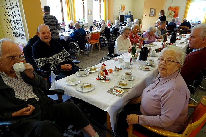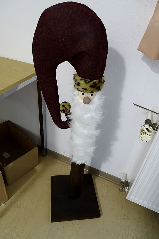 So wurde für die Haus-Dekoration von den Bewohnerinnen und Bewohnern professionell anmutende Wichtel gebastelt und damit eine Idee aus Skandinavien aufgenommen. Dort bedeutet der alte Weihnachtsbrauch, dass der Wichtel tagsüber schläft und er sich nachts heraus schleicht. Dann bereichert er die Menschen mit winterlichen Ideen und manchem Streich. Als Helfer des Weihnachtsmanns verbreitet er Weihnachtsvorfreude und sorgt für einen geborgenen Dezember. Nun steht der Wichtel in verschiedenen Bereichen des Hauses und verzaubert Bewohner, Bewohnerinnen und so manchen Angehörigen.