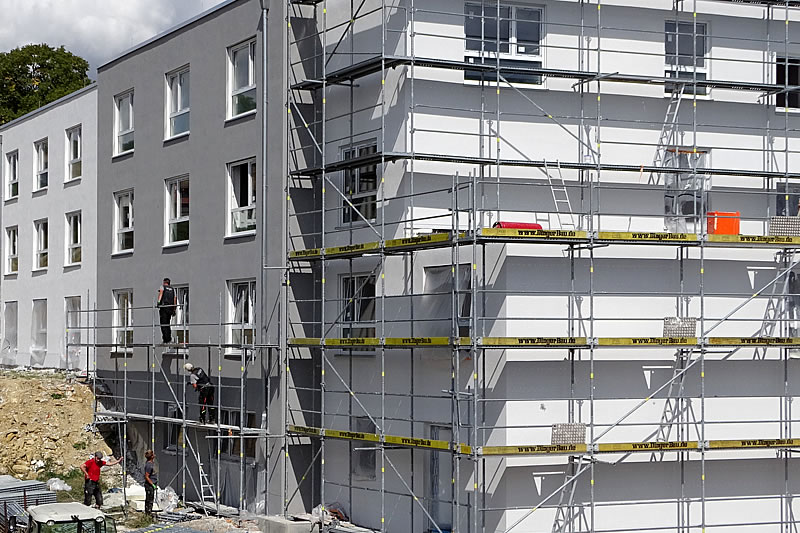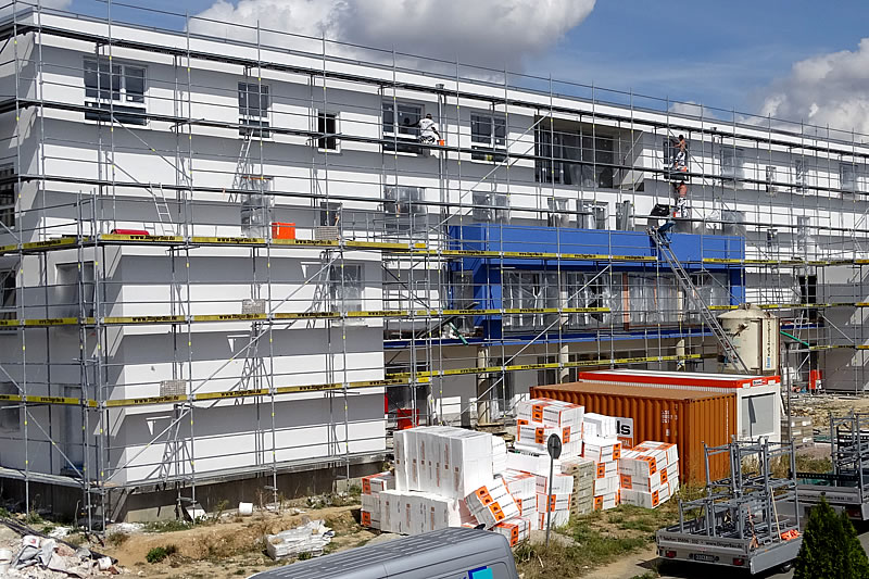 Nun kommt auch in die Bühlstraße 44 die Farbe ins Spiel: Der Fassadenanstrich wird seit August angebracht.