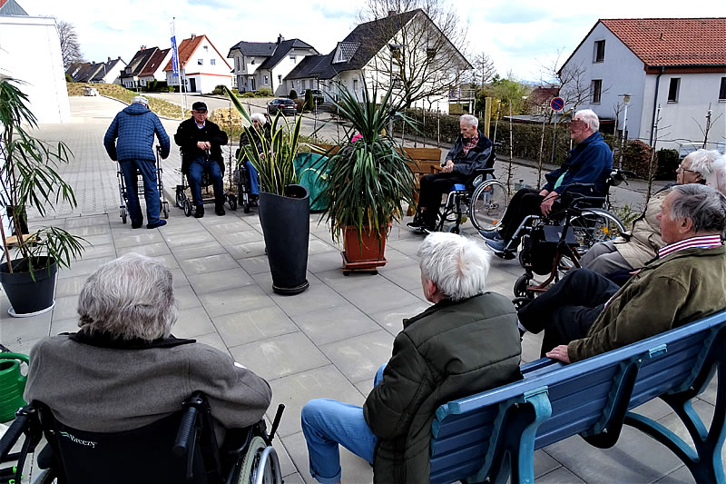 Der Start des neuen Angebotes „Gartengruppe“ wurde gleich von sonnigem Frühlingswetter begleitet: Mehrere große Pflanzen aus dem alten Haus Phöbe wurden neu versorgt und damit gerettet mit Hilfe der Bewohnerinnen und Bewohner. Es wurde neue Erde in die Kübel gegeben, alte Pflanzenreste entfernt und mit weiteren neuen Pflanzen (wie Efeu) ergänzt.