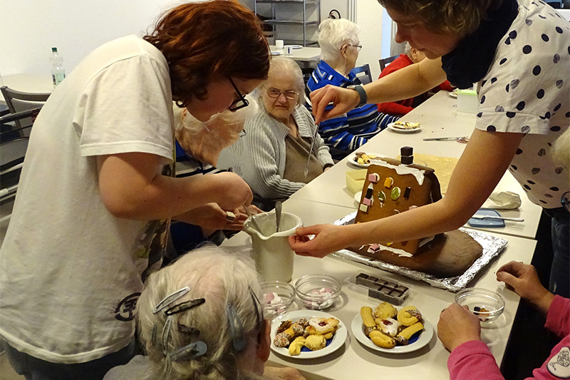 Im Rahmen ihres Konfi-Unterrichts absolvieren sie ein Gemeindepraktikum. So kamen Jung und Alt für ein paar Stunden zusammen. Neben den leckeren Plätzchen wurden auch Lebkuchenhäuser selbst gebacken und verziert.