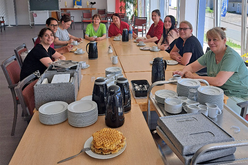 Fröhliche Gesichter der Mitarbeitenden am Tag der Pflege! Im Haus Phöbe erhielten die Mitarbeitenden am 12. Mai als Dank für ihren tagtäglichen Einsatz frisch gebackene Waffeln.
