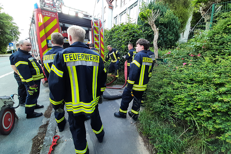 Anfang Juni stand eine Feuerwehrübung am neuen HAUS PHÖBE an. Großen Eindruck machten dabei die beiden roten Feuerwehrautos auf der Straße.