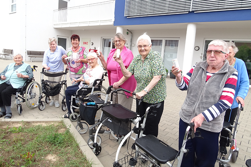 Bei Lufttemperaturen über etwa 38 Grad Celsius und starker Sonnenstrahlung wird so mancher Blühstreifen eine braune Pracht. Einige Bewohnerinnen von Haus Phöbe fanden, dass den kargen Flächen am Besucherparkplatz das Ende nahen sollte.