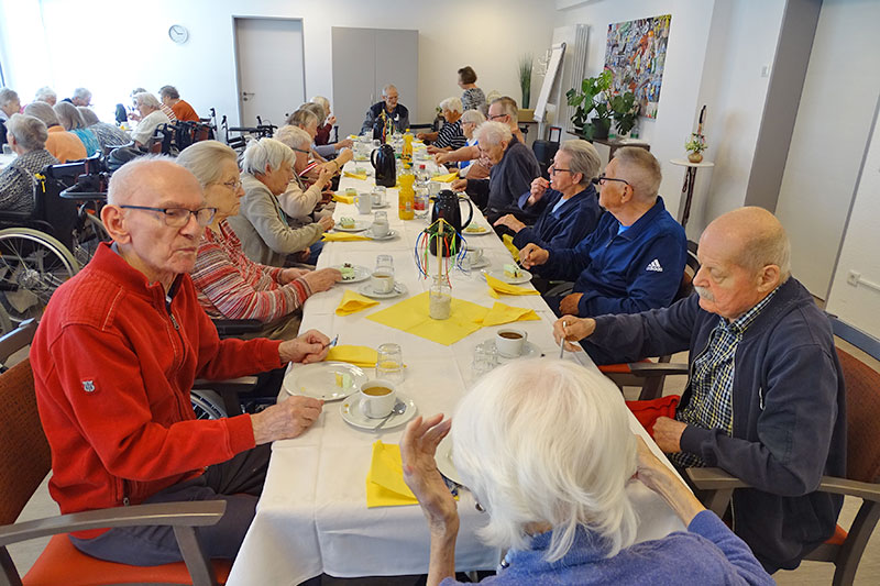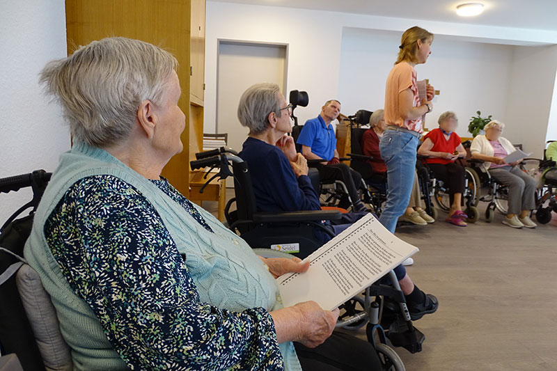 Montags ging es um Kunst und kleine Maibäume wurden gebastelt. Dienstags wurden im Singkreis Mailieder gesungen. Ein Film zum Mai gab es tags darauf und donnerstags stand die Maitorte im Mittelpunkt des Geburtstagskaffee. Zum Schluss ging es mit Schwung aus der Woche – es wurden verschiedene Sitztänze ausprobiert.
